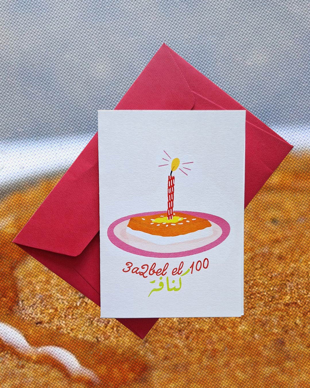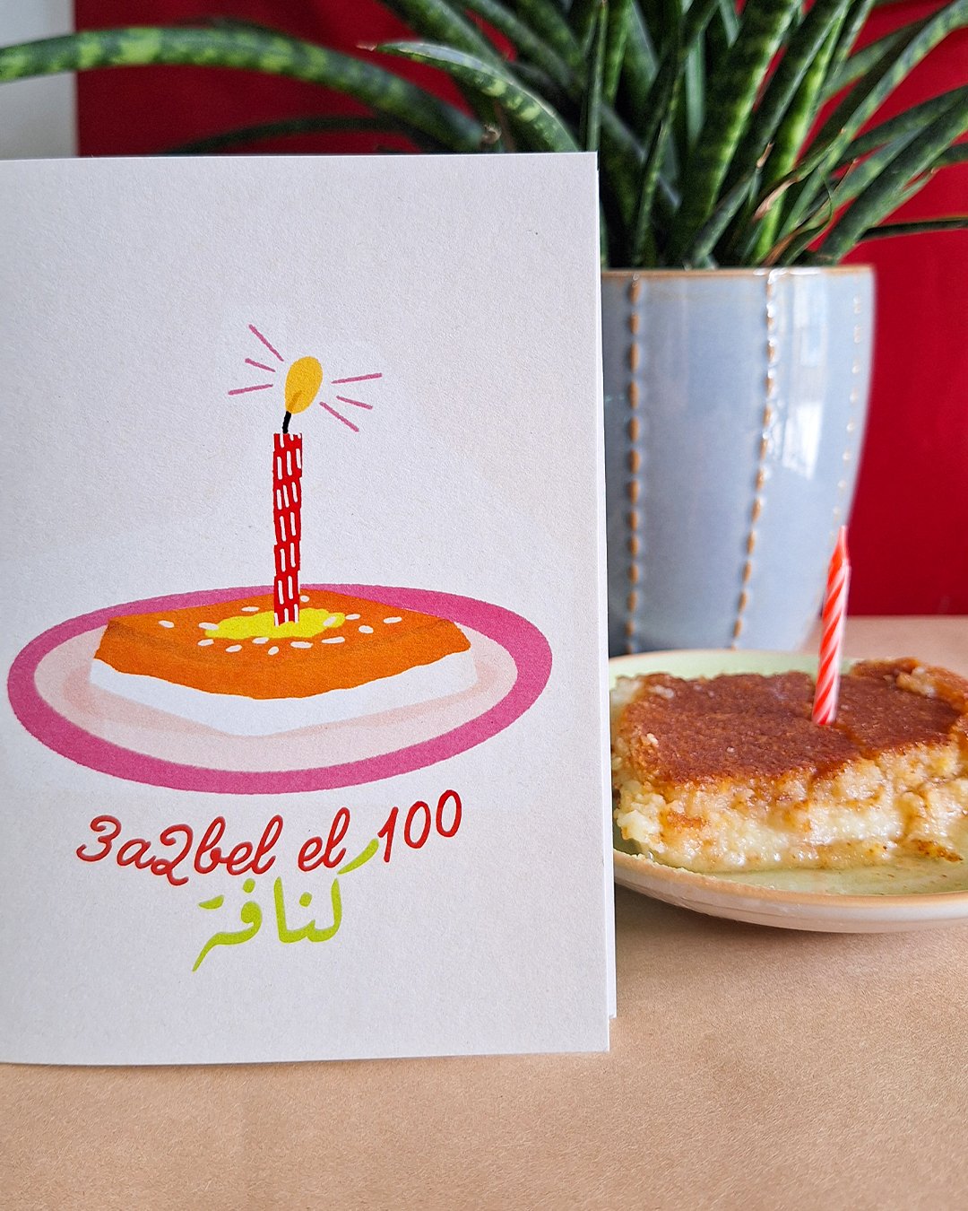 For the knefe lovers! This hand-drawn A5 card celebrates birthdays with a sweet twist, because Knefe > Croissant! Perfect for anyone who knows the joy of this Lebanese dessert.