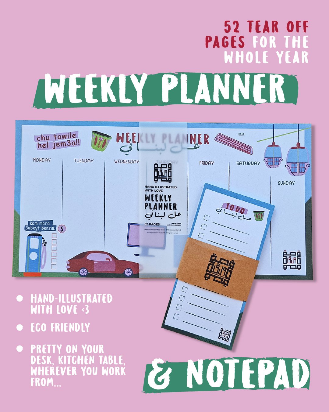Plan it all, 3al Lebnéné! The Planning 3al Lebnéné Bundle brings together the Weekly Planner 3al Lebnéné and the To Do Notepad 3al Lebnéné for the ultimate mix of humor and productivity. Keep your week organized and your tasks in check, all with a local twist that adds fun to every note and reminder.
