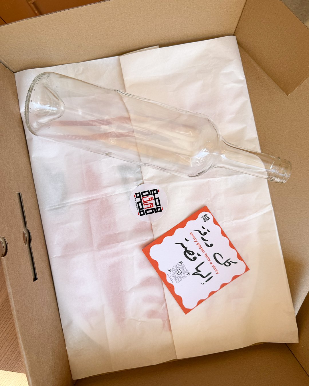A classic and cheerful paper vase cover featuring a universal striped pattern in sunny yellow and orange. This simple design is printed on recycled paper and comes with an empty glass bottle, offering a perfect way to add a bright pop of color.